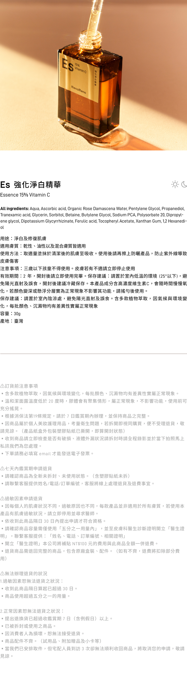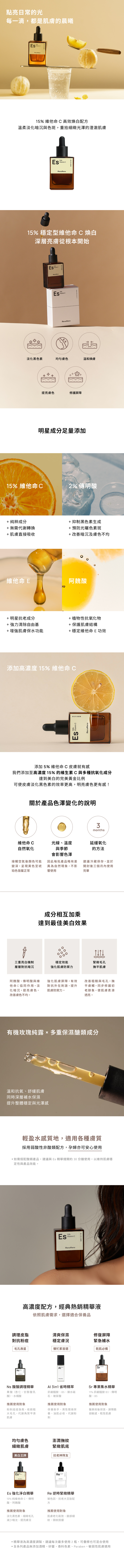 ▪︎ 添加 15% 高濃度維他命 C,美白的黃金比例