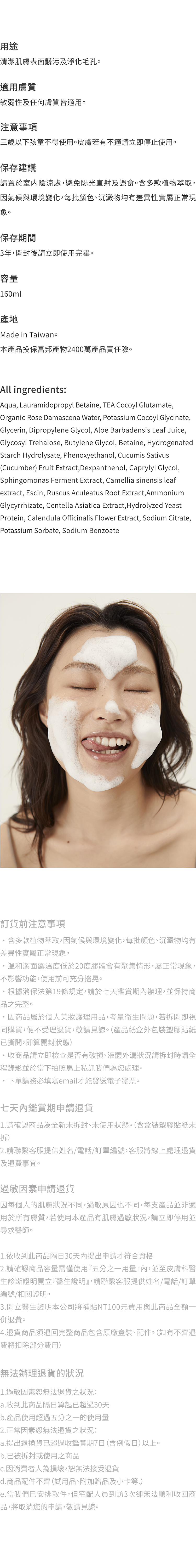 • 洗卸合一,深層清潔毛孔髒污,帶走防曬彩妝