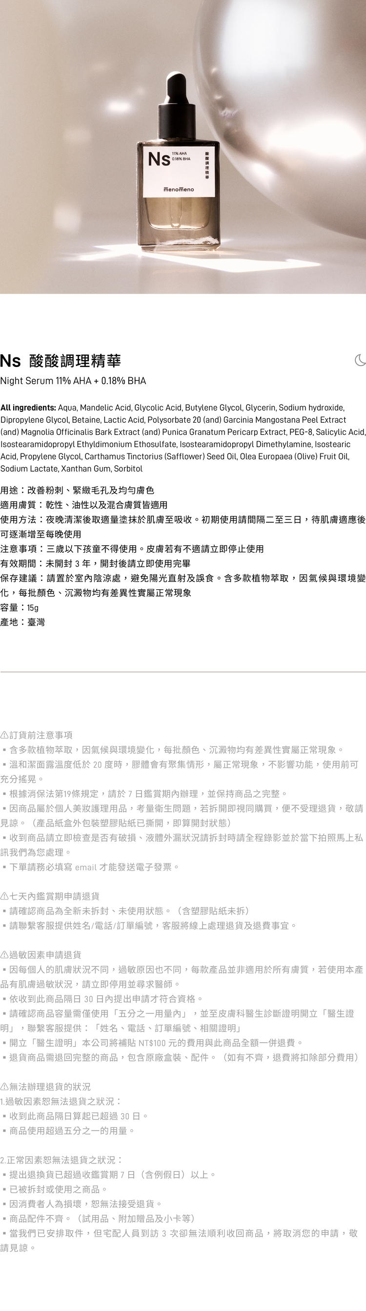 Night Serum 11% AHA + 0.18% BHA = Ns