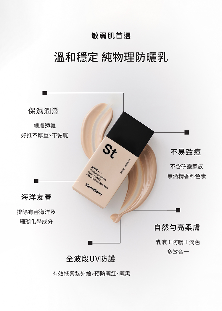 ∨ 擔心化學防曬易刺激肌膚的人
