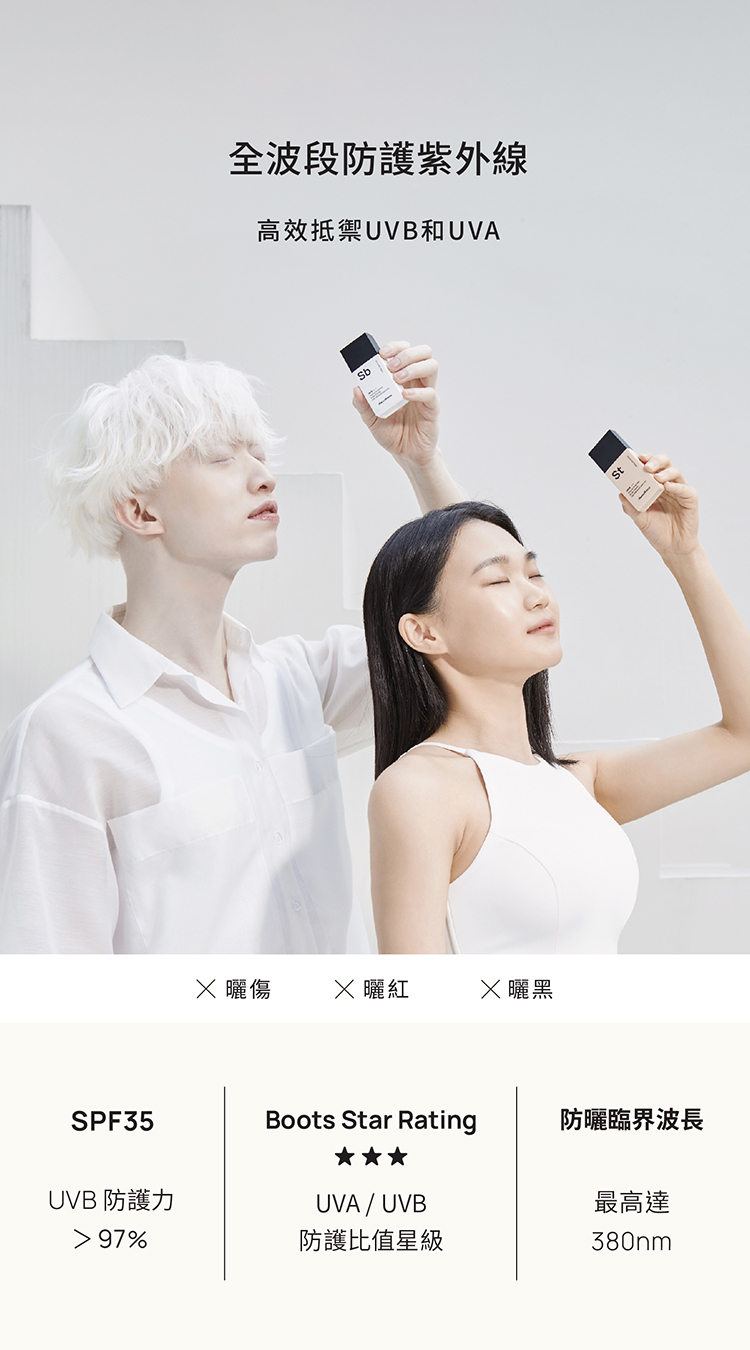 有效抵禦UVA/UVB,防止曬紅、曬黑