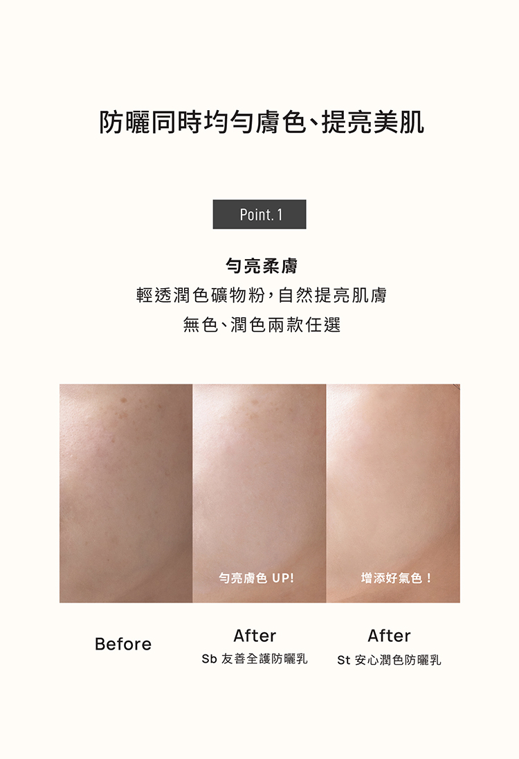 ∨ 除了防曬同時均勻膚色、提亮美肌