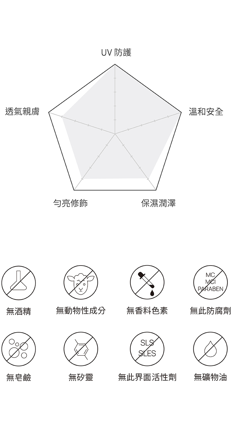 ∨ 期待溫和無矽靈、不易致粉刺的防曬